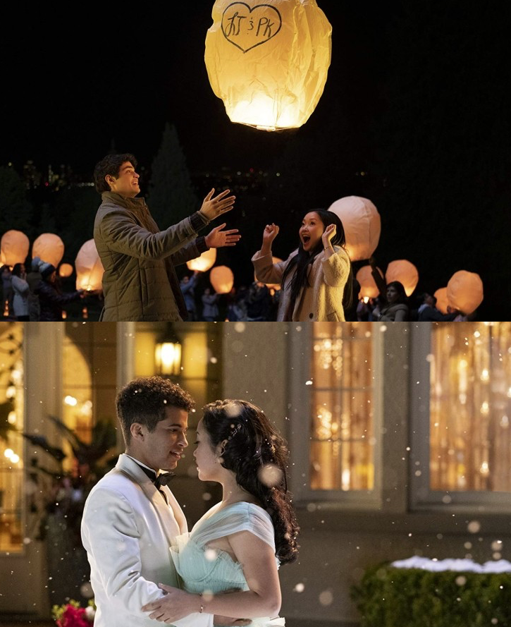 여주 이름은 라라 진, 남주는 피터입니다. 라라 진은 너무 귀엽고, 발랄하고, 깜찍하고, 사랑스러운 역할입니다. 라라 진을 연기한 라나콘도르는 미국에 입양된 베트남인이라고 합니다. 실제로 드라마에는 한국인이 출현하지 않았던 것으로 알려져 있어요. 애초에 제작사가 캐스팅을 백인으로 바꾸고 싶다고 했었지만, 작가인 제니 한은 절대로 동양인이어야 한다고 했대요. 피터를 연기한 노아 센티네오는 다른 영화에서도 봤다 싶은 낯익은 배우인데, 실제로 the perfect date영화에서 남주였더라고요. 미소가 너무나 사랑스러운 배우입니다.