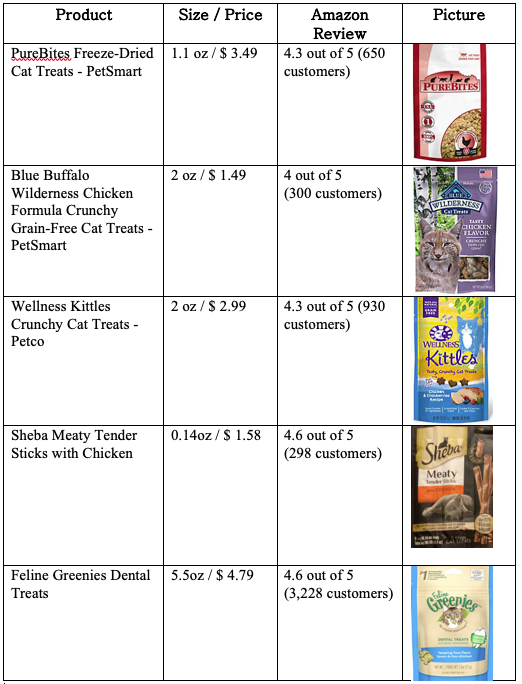 There are so many different products out there— standard dry treats, standard wet treats, dental treats, and special diet treats such as diabetes, kidney issues, hairball, or allergies. and you don’t really know like which one to pick, which one is the best or which one isn’t the best.